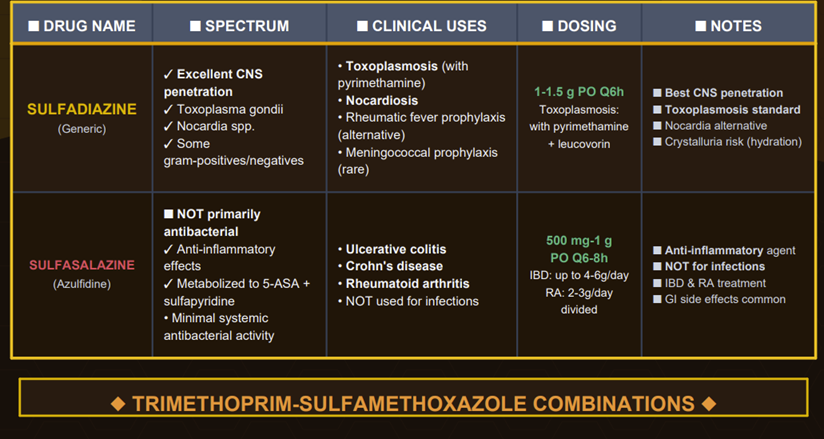 Distinguishing between antimicrobial sulfonamides and non-antibiotic drugs that also contain a sulfonamide functional group, such as certain diuretics (e.g., hydrochlorothiazide), hypoglycemic agents (e.g., sulfonylureas), and anti-inflammatory drugs (e.g., celecoxib) is important.