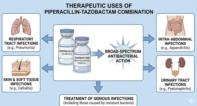 Therapeutic Uses: Piperacillin-tazobactam is considered a broad-spectrum antibiotic combination.
