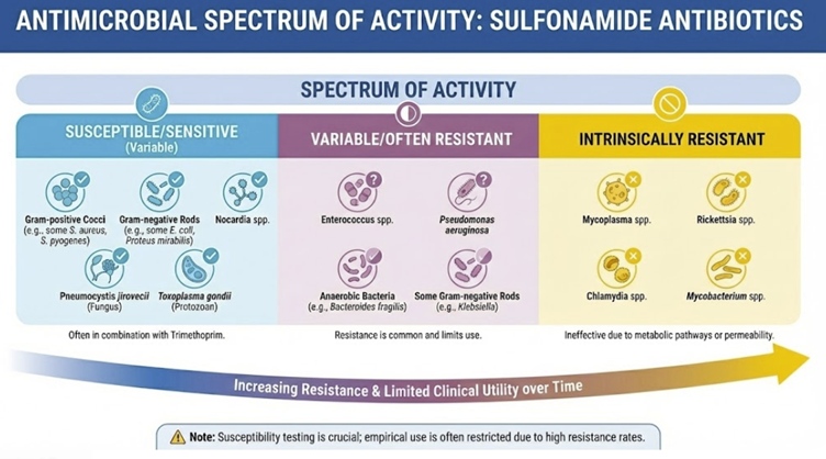 For instance, sulfisoxazole is eliminated quickly (t½ ~5–6 h), sulfamethoxazole intermediate (~11 h), sulfadiazine (~17 h), whereas sulfadoxine is extremely long-acting (~100–200 h)11,22