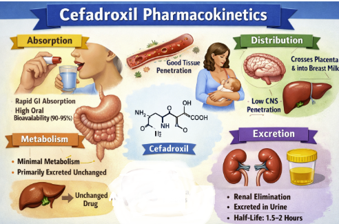 Cefadroxil is noted for its excellent oral bioavailability, likely at least 90%.16