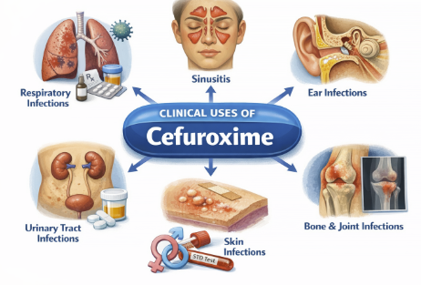Uncomplicated skin and soft tissue infections (SSTIs) in adults and adolescents (≥13) can be treated with oral cefuroxime axetil, whereas more serious SSTIs may require IV cefuroxime.