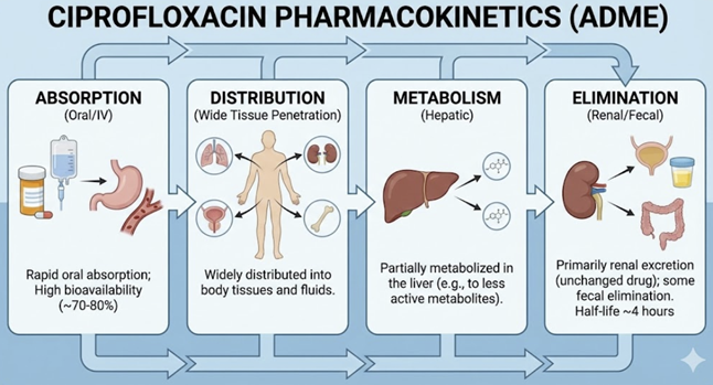 Ciprofloxacin: Pharmacokinetics Oral bioavailability ~70%-80%.2