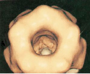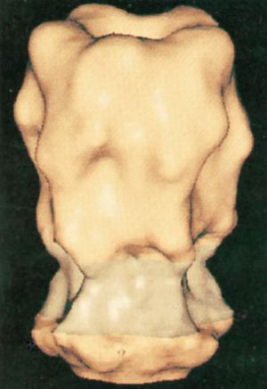 - These images were developed utilizing cryoelectron microscopy (9 Å resolution). One view shows the receptor from the side (left image) where is the second view is from above (right image). The subunits are described as exhibiting 5-fold symmetry around the central pore as suggested by the image on the right.29,30