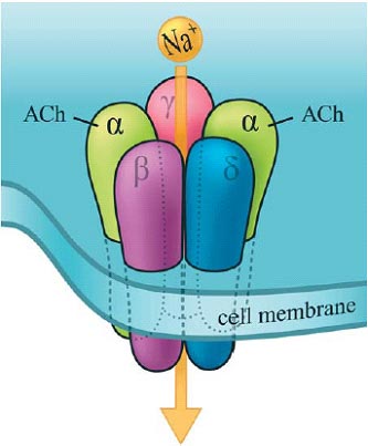 The nicotinic cholinergic (ACh) receptor consists of five subunits (two α, one β, one γ and one δ).27