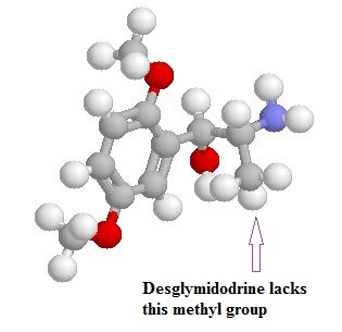 A selective α1 adrenergic agonist, midodrine (Amatine, ProAmatine) is classified as a prodrug. This designation indicates that the physiological response noted after midodrine administration is due to a metabolite, in this case desglymidodrine. Desglymidrine differs from methoxamine only by lacking a CH3 (methyl) group on a side chain. (compared 3D structures below)
