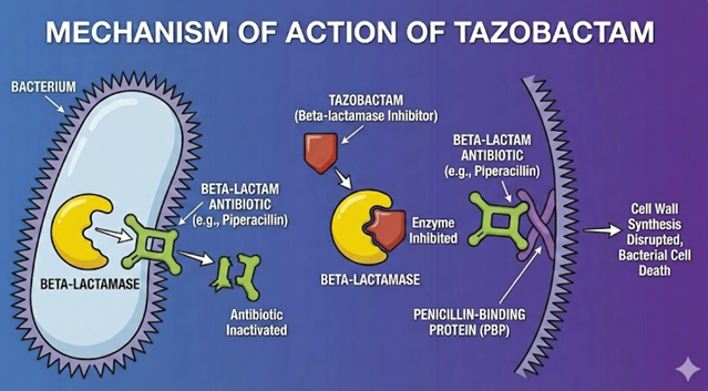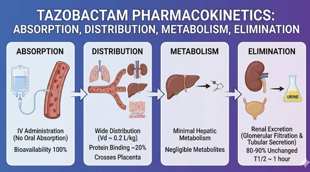 Tazobactam also is a component of ceftolozane/tazobactam (ratio 2:1) – in that combination its kinetics remain linear and predictable, with similar reliance on renal elimination.