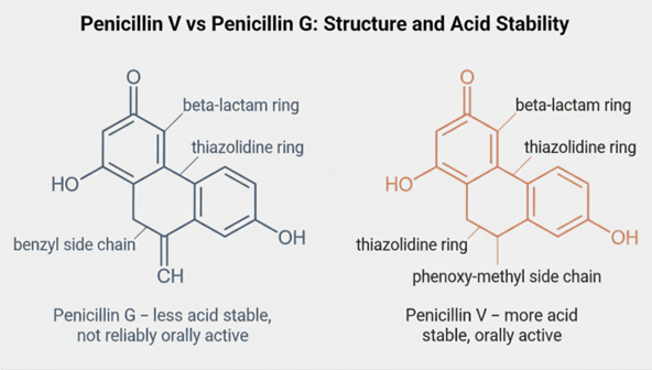 distinguishing penicillin V from penicillin G.