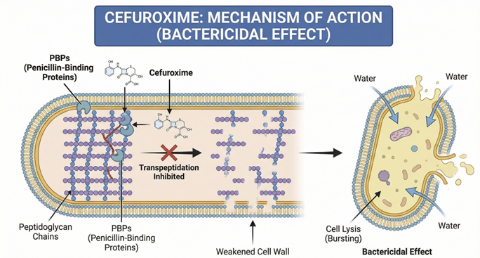 The result is an inability of bacteria to maintain cell wall integrity, causing cell death which is a time-dependent bactericidal effect.