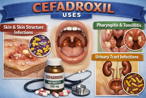 Treatment of pharyngitis and tonsillitis highlight some pharmacological advantages of cefadroxil administration.