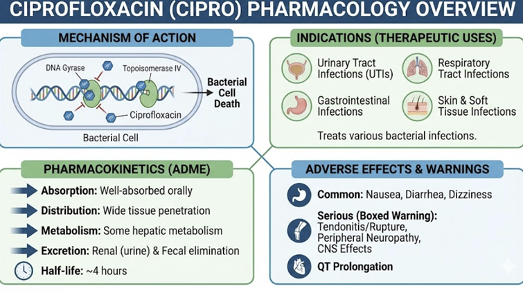 Ciprofloxacin: Pharmacokinetics Oral bioavailability ~70%-80%.2