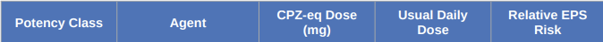 anticholinergic burden for a higher EPS risk, while low-potency agents carry
