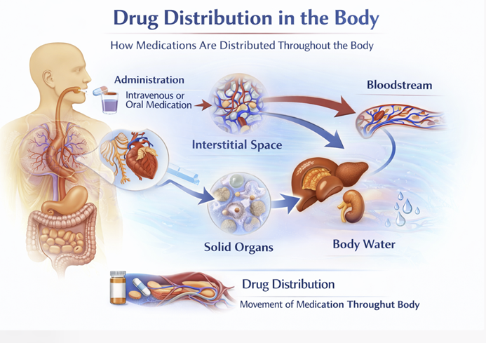 Distribution describes this transition from blood to tissue targets, but it is not uniform.