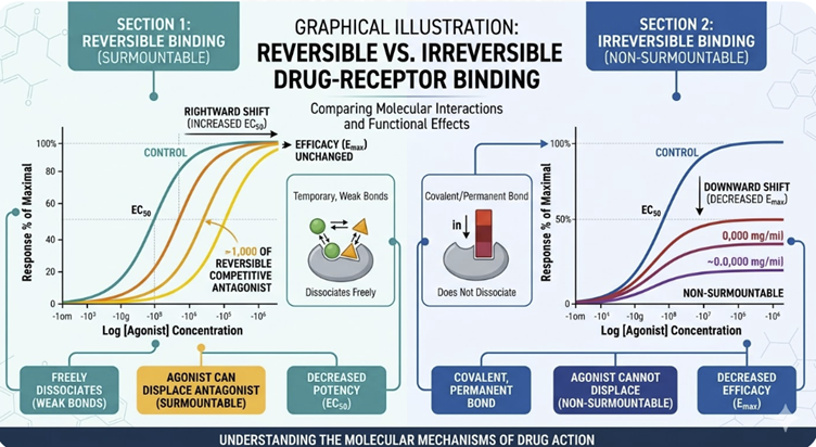 The distinction between reversible and irreversible binding also matters for the interpretation of dose-response curves.