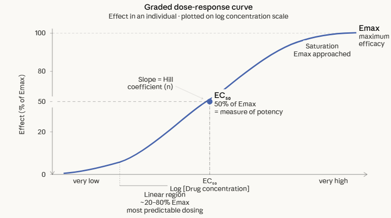 Two parameters extracted from the graded dose-response curve are especially clinically important: